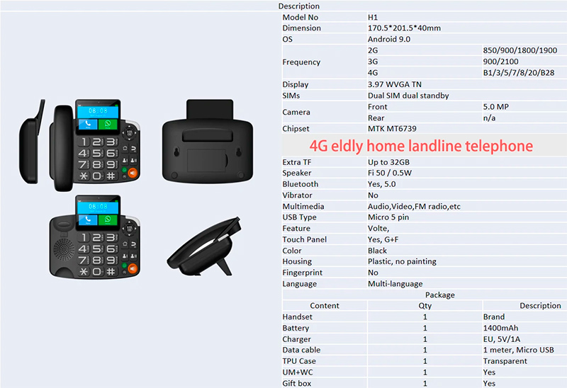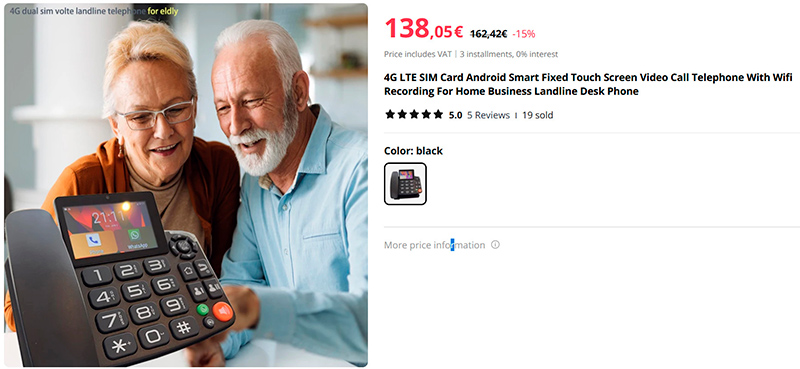 Пожилым людям сложно управляться со смартфонами/компьютерами, и это устройство призвано упростить им задачу голосовой и видеосвязи с родственниками через Интернет - беспроводной телефон на Android с камерой и с предустановленными Skype и WhatsApp. Имеет слот для симкарты (мобильный Интернет), сенсорный экран, также подключается по WiFi, имеет Bluetooth для подключения внешней гарнитуры. Может стоять на столе или монтироваться на стену.