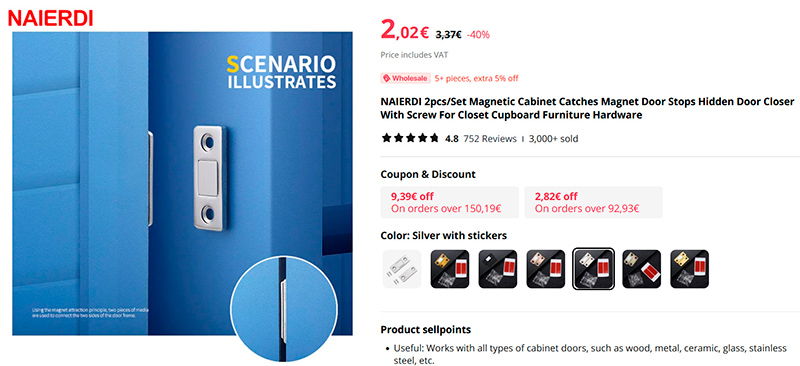 Магнитные доводчики-держатели для дверок шкафов и для полок. Могут крепиться саморезами, а можно их сажать на двухсторонний скотч, который идет в комплекте.