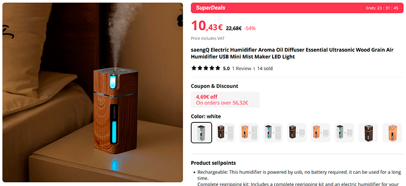 Симпатичные и совсем недорогие увлажнители воздуха разных расцветок. Могут также использоваться для ароматерапии: есть варианты комплектации со сменными ватными валиками для различных ароматов.