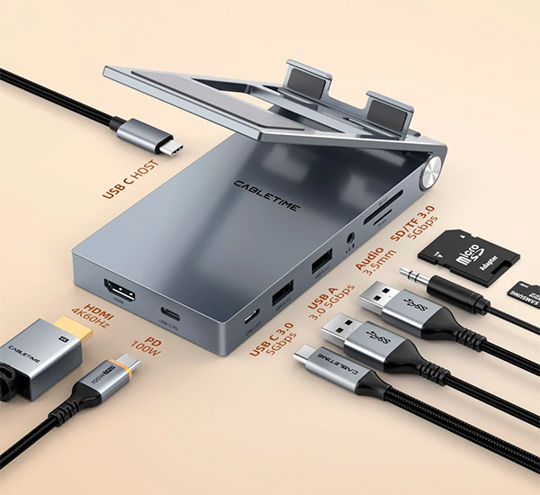 Удобный хаб "8 в 1" - для планшетов и ноутбуков. С его помощью достаточно мощный планшет можно превратить в практически ноутбук (только подключить еще клавиатуру и мышь - проводные или беспроводные).