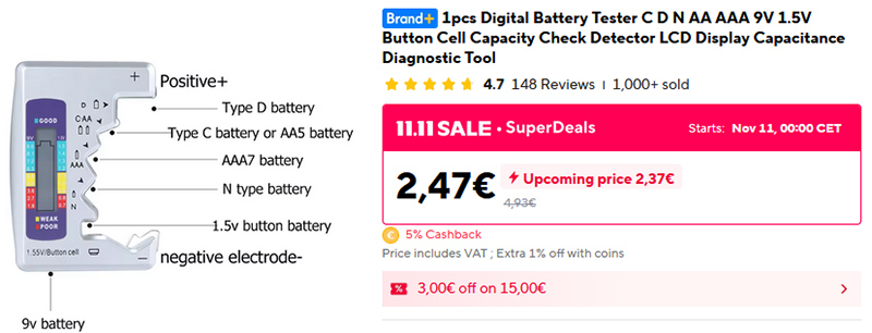 Вот тестер для батареек как раз ваще не удобный. На Али есть другой, где вторая часть подвижная, этот гораздо лучше.