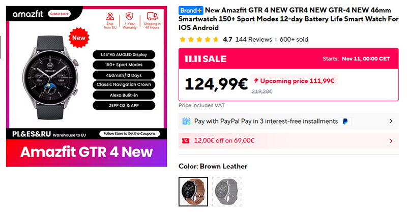 У новой модели умных часов Amazfit GTR 4 обещают цену в 112 евро. Часы, судя по предыдущей модели, должны быть очень достойные.