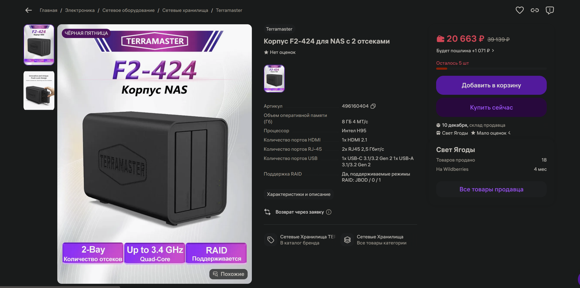 Сейчас в официальном магазине TerraMaster отличные скидки на множество моделей NAS и DAS: