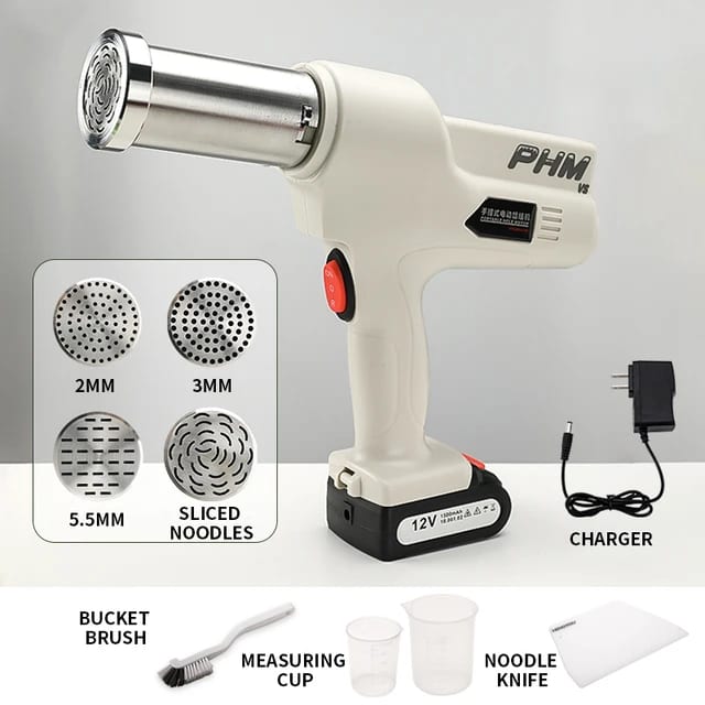 У меня дома самая типичная лапшерезка. Я, если честно, вообще не представляю, как стандартное тесто для пасты (100 г муки на 1 яйцо) можно выдавливать через такую вот фиговину.