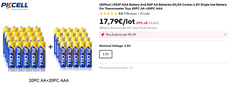 Батарейки я давно уже заказываю на Aliexpress. Сразу большими комплектами по 20-40 штук: так дешевле и хватает на пару-тройку лет, а то и больше. Перезаряжаемые аккумуляторы я не использую: с ними возни много, а экономия не сказать что сильно существенная.