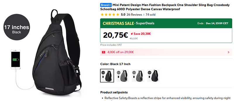 Приехал вот этот рюкзак с одной лямкой (мне такой был нужен для самоката, велосипеда, да и для походов в город).