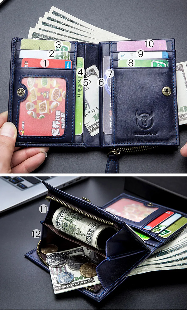 Мужской кошелек BULLCAPTAIN из натуральной кожи. Шесть оттенков цветов, большое количество отделений.