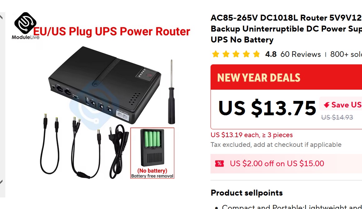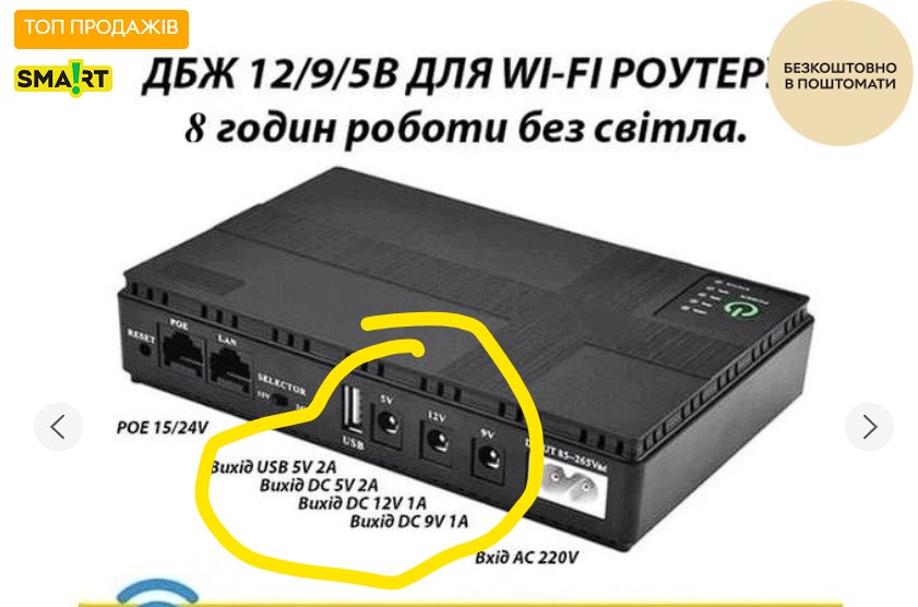 Также купил бесперебойник для роутера. Есть ПОЕ нем. 5/9/12В выходы. На 4*18650. Пока в дороге. Если у вас такой - хоть я сомневаюсь что где-то в мире еще такое надо кроме нас ... то напишите ...