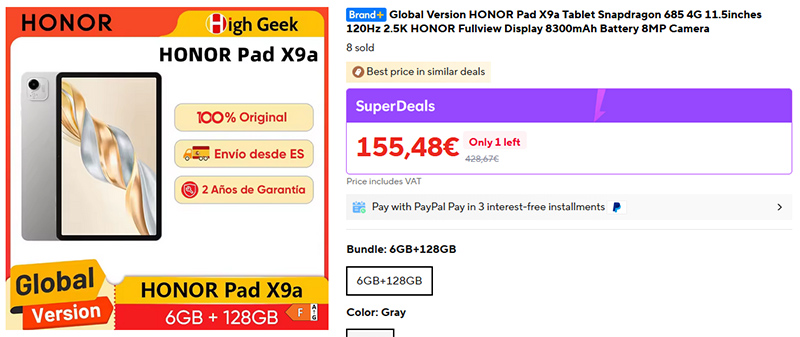 Если нужен недорогой планшет достойного производителя - вот хорошая цена на HONOR Pad X9a. Дисплей 11,5" 120 Гц 1504х2506; Qualcomm Snapdragon 685 (6 nm); 6/128 ГБ; 4 стереодинамика; аккумулятор 8300 мАч, мощность зарядки 35 Вт. За такие деньги - отличный вариант.