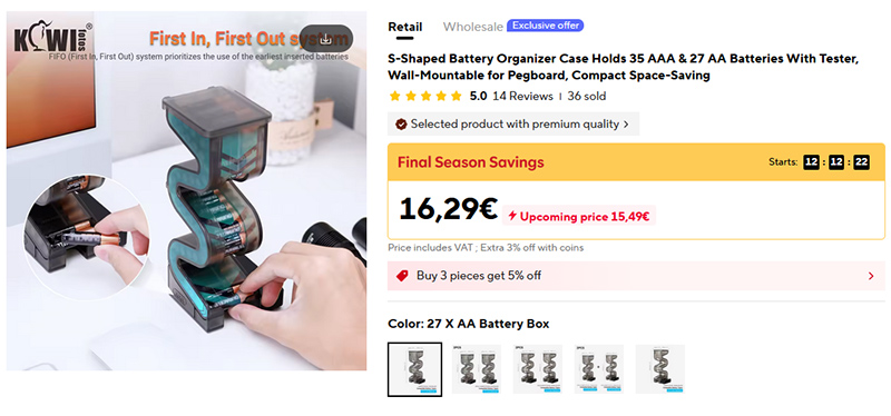 Если же вы предпочитаете органайзер в виде ящичка - то вот неплохой вариант, и там в комплект также входит тестер для батареек.