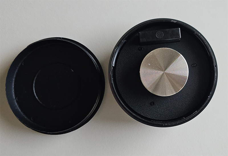 Нижняя крышка снимается, там виден серебристый контейнер.