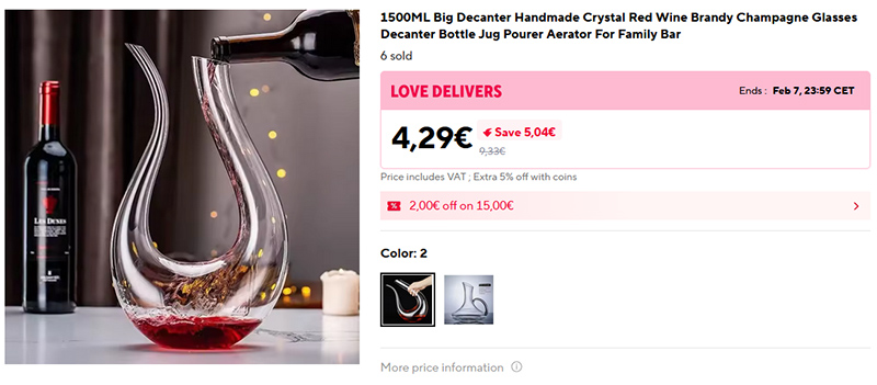 Изящный декантер на 1,5 литра. Там же по ссылке есть декантер традиционной формы с дополнительной ручкой.