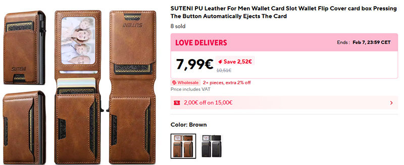 Удобный кошелек-картхолдер из искусственной кожи. Карта из кошелька извлекаются нажатием кнопки.