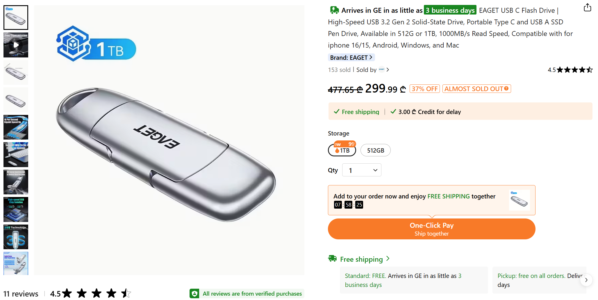 Я ещё в 2023 году купил Orico как на фото. Размером с не самую мелкую флешку, в металлическом корпуче, тяжёленькая. Скорость чтения всего 400 MB/s да и объём поменьше. Но всё как заявлено. Сейчас у них вижу похожие, но быстрее (1000MB/s+). 1TB стоит ~AU$200.