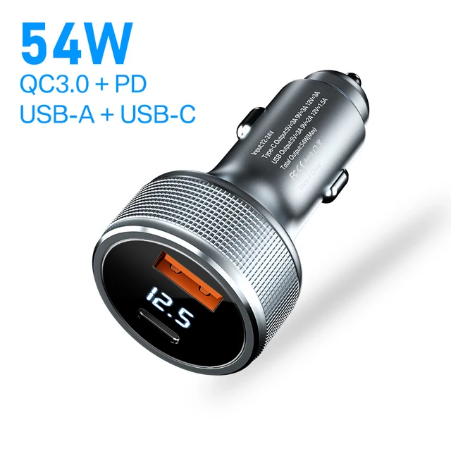 Очень недорогое, но мощное автомобильное зарядное устройство ASOMETECH 54W (Type-C + USB) за 359 ₽.