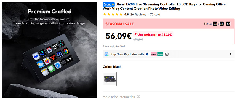 Мини-пульт Ulanzi D200 на 13 настраиваемых клавиш, чтобы делать часто повторяющиеся действия одним нажатием. Подходит для игр, монтажа, обработки фото, работы в офисных программах и стримов: на любую клавишу можно повесить целую кучу самых разнообразных действий. Кнопки с настраиваемыми через приложение пиктограммами, пульт стоит на столе под углом и занимает минимум места.