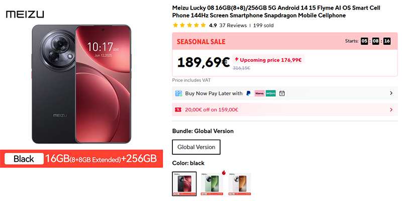 Хорошо упала цена на Meizu Lucky 08 (смартфон конца 2024 года). Всего за 189 евро вы получаете: дисплей 6,78" LTPO AMOLED, 144Hz, 5000 нитс; Qualcomm Snapdragon 7s Gen 2; 8/256 GB; камера 108 Мпикс, 1/1.67"; аккумулятор 6000 мАч, зарядка 45 Вт.