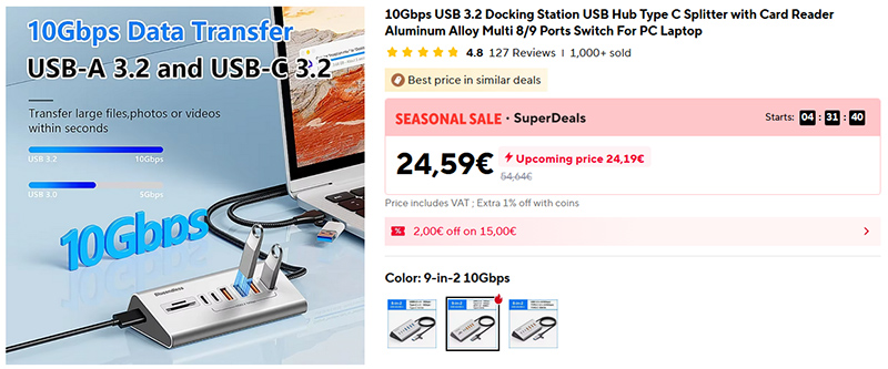 Удобные хабы в алюминиевом корпусе разных конфигураций. Есть вариант с кардридером.