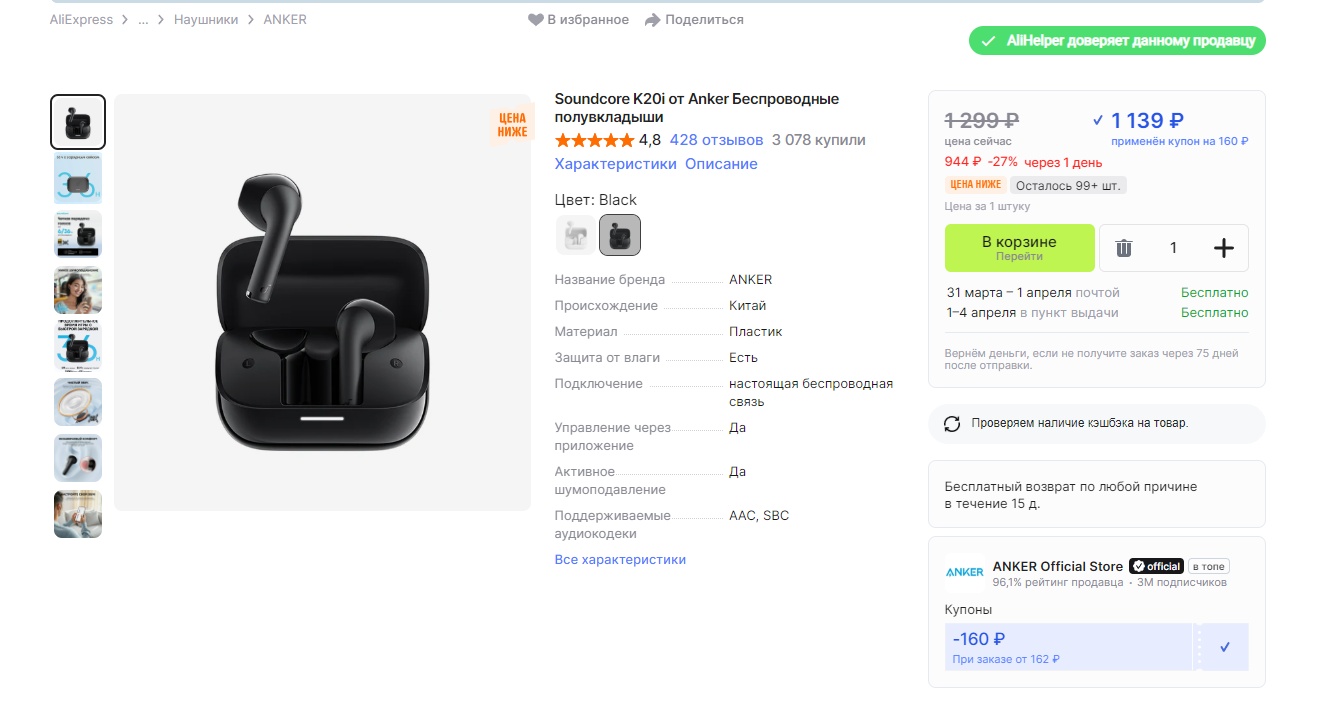 Цена: 1142 руб, с учетом купона на 161 руб.