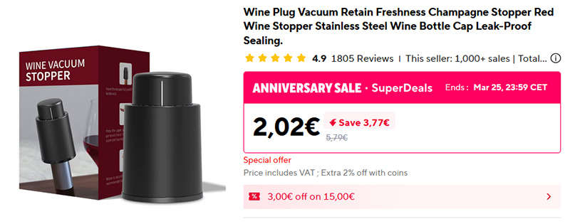 Проверенная в работе вакуумная пробка для вина. Я именно вот эти пробки и использую. Хорошо сохраняет недопитое красное вино в течение нескольких дней, при этом если помпу периодически подкачивать, то сохранит и до пары недель.