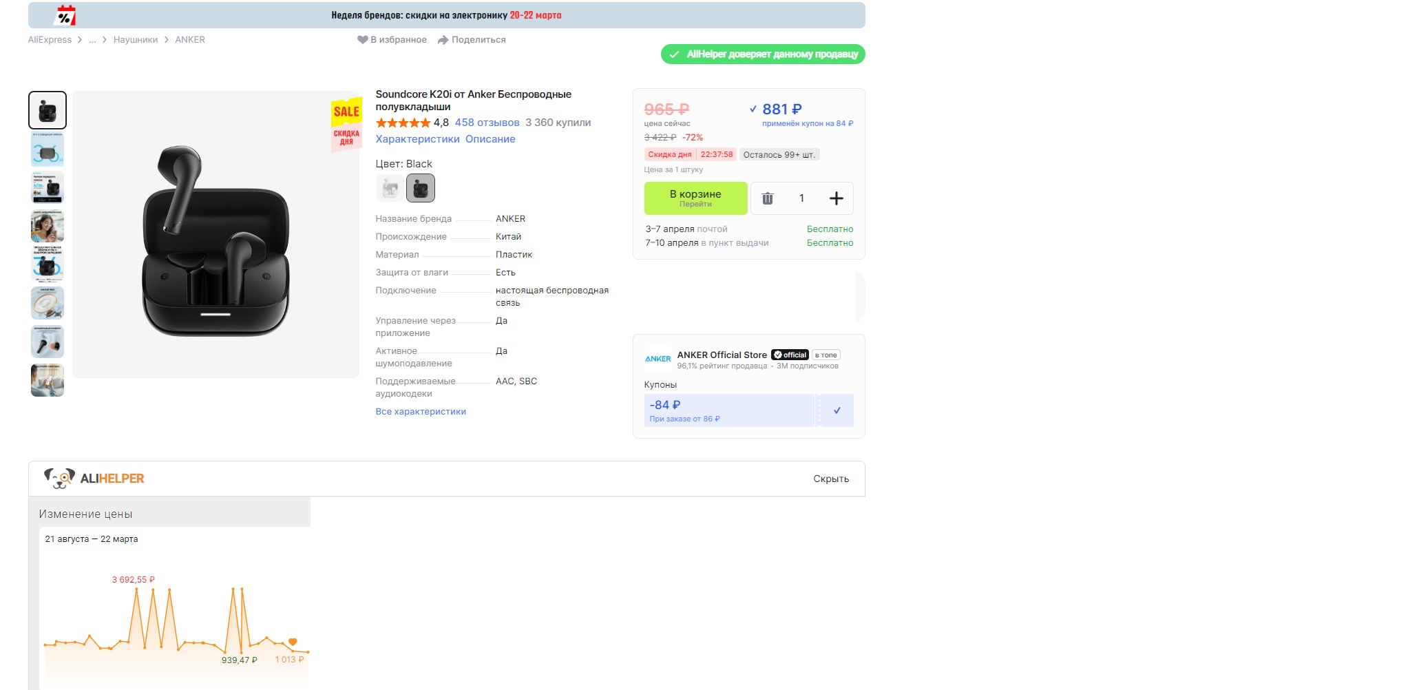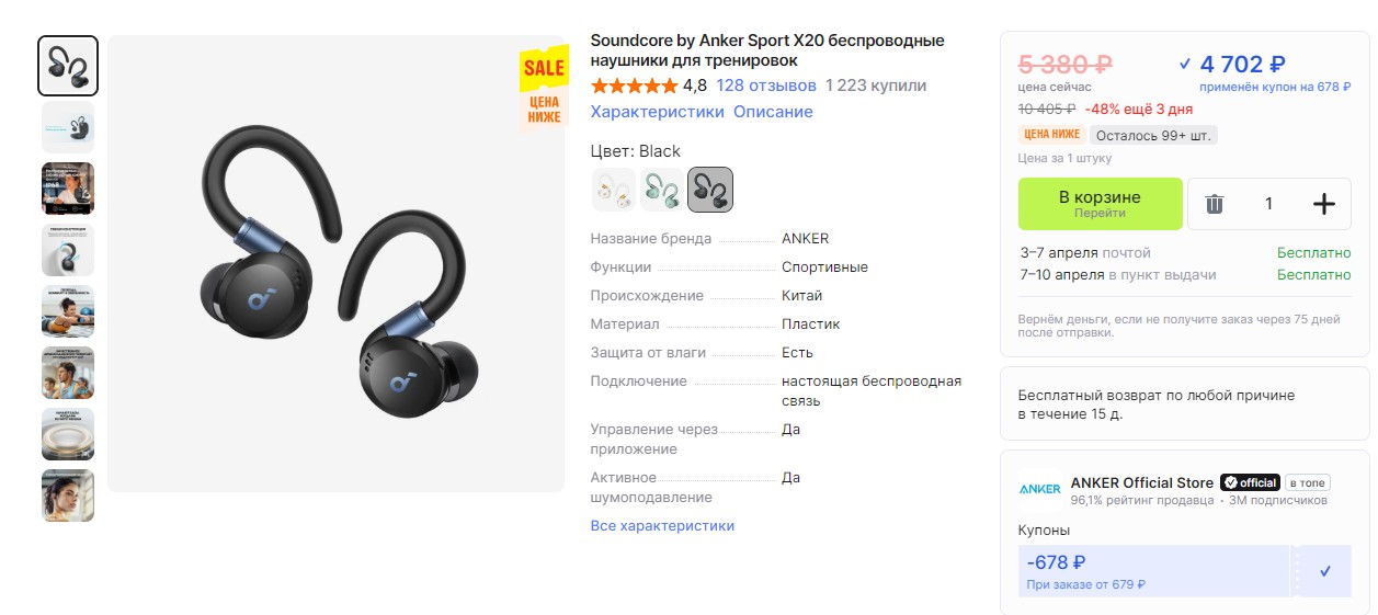 4.8 рейтинг, продаж свыше 3 тысяч в отзывах хвалят, в т.ч. за приложение для смартфона SoundCore.