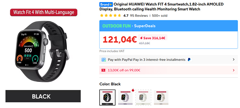 Очень хорошая цена на часы Huawei Watch FIT 4. Huawei Watch FIT 4 Pro отличаются только сапфировым стеклом и парой датчиков (температура кожи и ЭКГ), и они стоят за 200. Мне эти часы очень понравились, я делал их обзор