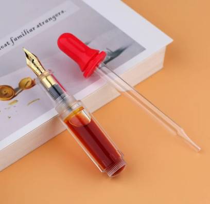 Компактная прозрачная перьевая ручка. Можно картриджи. Можно прям чернила заливать. Отлично скользит. Не мажет.