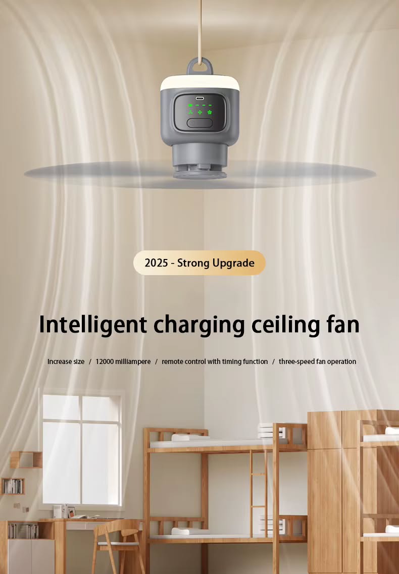 Три скорости вращения + функция легкого обдува. Пульт управления. Диаметр лопастей 45 см. Встроенный аккумулятор на 12 000 мА/ч. Таймер сна на 2, 4 и 8 часов. Ночник. Функция автоматической остановки при касании лопастей. Зарядка Туре-С.