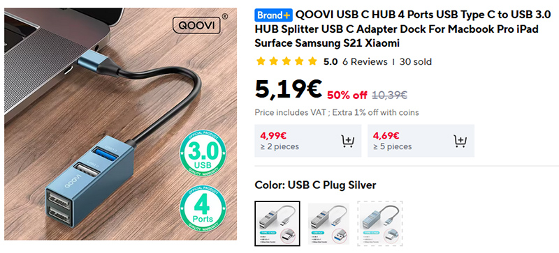 Удобный четырехпортовый USB-хаб QOOVI для самых разнообразных применений. Есть порт USB 3.0, есть версия с Type-C и с USB-A.