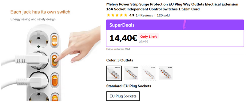 Удлинители Melery на 3 и на 6 розеток с отдельным выключателем для каждой розетки - такое бывает нужно.