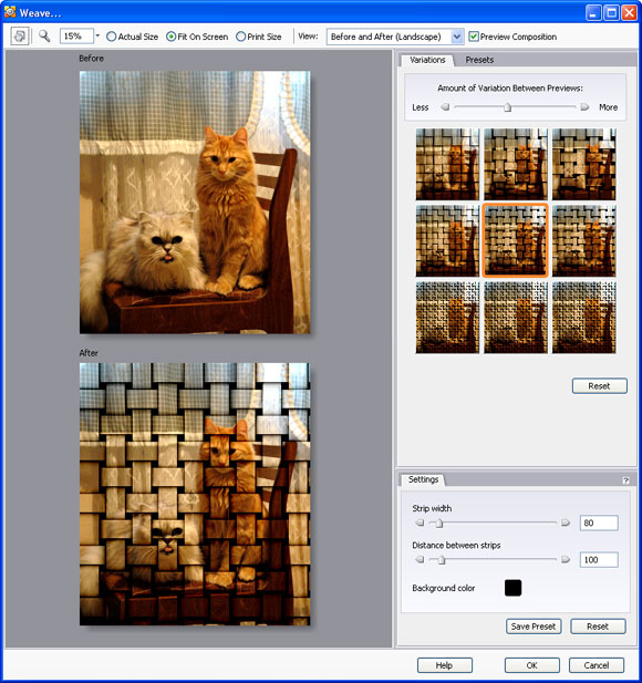 Среди стандартных инструментов нашлось несколько довольно забавных процедур, которых я не припомню в "Фотошопе" (имеются в виду стандартные возможности, ведь понятно, что плагинами можно сделать все что угодно). Например, инструмент для создания самых разнообразных виньеток: