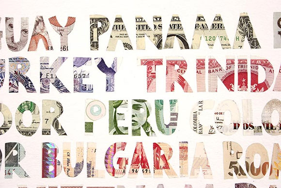 Justine Smith настолько любит деньги, что делает из них коллажи и скульптуры. Вот пример коллажа: