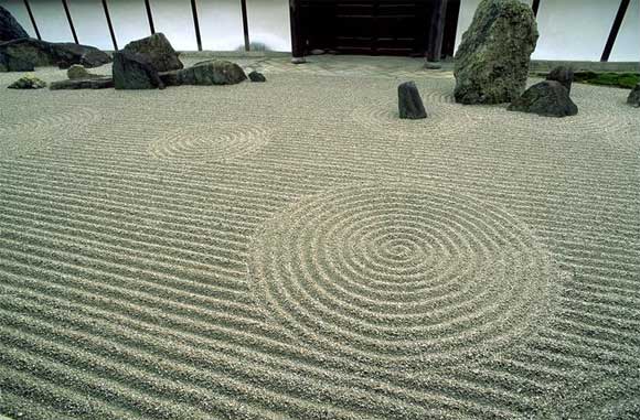 Кстати, у меня тоже есть сад камней. Миниатюрный. Маленькая такая коробочка с песком, в ней камни, грабельки и даже тачка, чтобы развозить песок. Мы с Бубликом с ней иногда играем - раскладываем камни и медитируем. Правда, Бублик как-то все меньше медитирует и все больше пытается использовать песочек по назначению, но я сказал, что если он мне тут устроит гринпис - это будет последний пис в его жизни. Бублик пока держится.