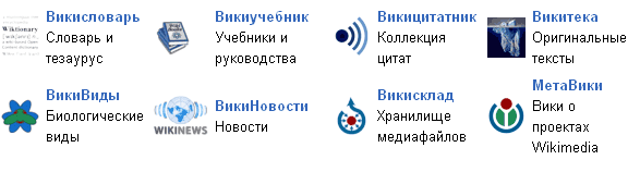 Внизу страницы - ссылки на братские википроекты, каждый из которых также заслуживает серьезного внимания.