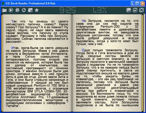В качестве менее цветастой, но значительно более гибко настраиваемой, более мощной, а также совершенно бесплатной программы можно предложить ICE Book Reader Professional (вот здесь ее можно скачать). Этот ридер позволяет создавать и хранить целую библиотеку с отдельными настройками просмотра и чтения по каждой книге. Вот как в ней выглядит настроенный для чтения рассказ: