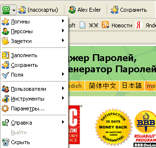 сказать, серьезной разведки боем. Действительно удобная штука. Запоминает все логины и пароли, вводит их одним щелчком, заполняет различные регистрационные формы (вы заранее вводите в специальную карту основные стандартные данные), шифрует данные, генерирует высокостойкие пароли и так далее. Умеет синхронизировать данные на разных носителях, есть