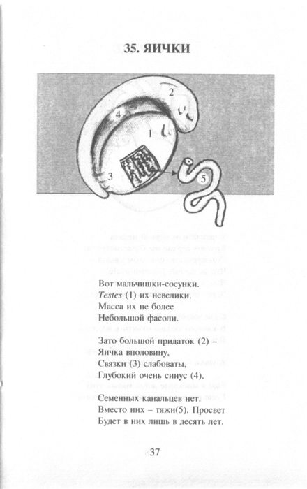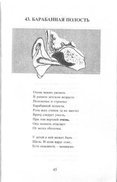 Вы мне можете объяснить, как вообще может прийти в голову мысль рифмовать учебные данные, связанные с такой важной наукой, как медицина? Ладно еще когда детишкам пяти лет в стихах рассказывают о методах решения дифференциальных уравнений - считается, что детишки так лучше запоминают, потому что в стихах есть элемент игры...