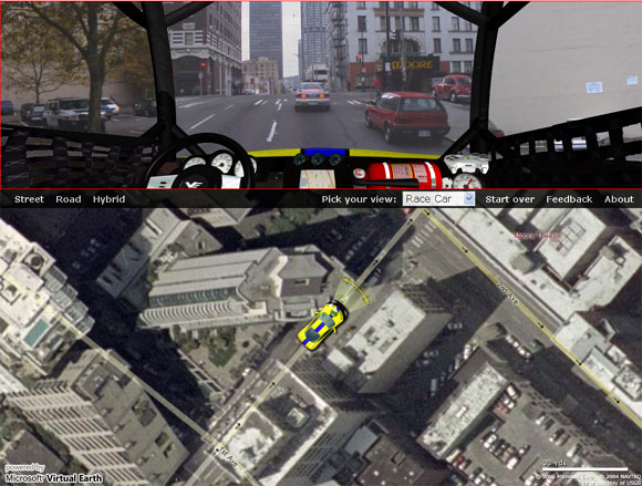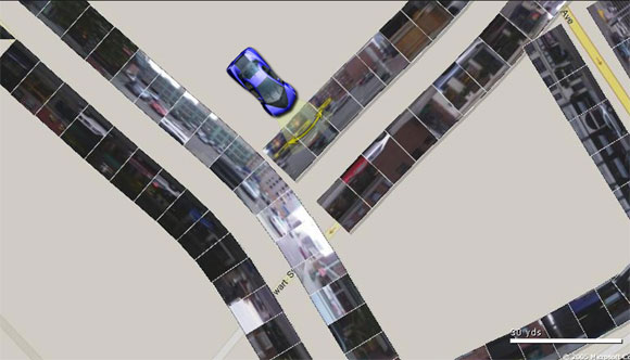 Вы можете с помощью мыши или клавиатуры перемещать автомобиль по карте куда угодно, причем в любой точке его еще можно крутить на 360 градусов, а система почти мгновенно (если у вас хороший канал в Интернет) начнет подгружать из Сети соответствующие фотографии.