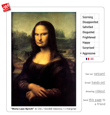 Очередное издевательство над Мона Лизой. Называется Mona Lips-Synch. Дождитесь загрузки и передвигайте курсор мыши по меню справа.