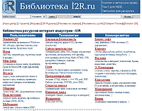 Вполне неплохая "Библиотека ресурсов интернет-индустрии I2R". В ней собран хороший комплект статей по трем направлениям: пользователям, технологам и коммерсантам. Пользователям рассказывают о Windows XP, играх, Linux, "железе", общении, подключении и мобильной связи. Технологам предлагают темы: хакеры и безопасность, сайтостроительство, сети, программирование, секреты поиска, книжная лавка. Коммерсанты получают: бизнес-софт, карьеру, рекламу, электронную коммерцию, консалтинг, менеджмент, рынок.