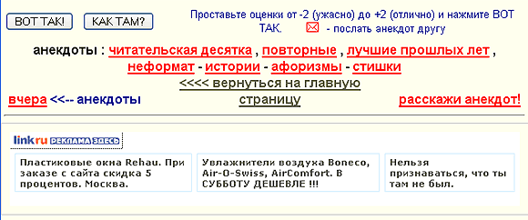 Рекламный блок Link.ru на сайте Anekdot.ru