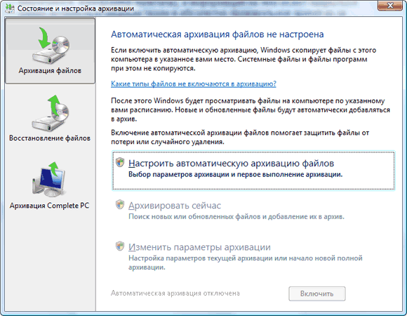Программа архивирования в Vista