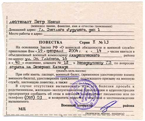 Повестка, разумеется, интерактивная. Все ее поля, где как бы впечатывается текст, заполняются вами, чтобы выглядело все совершенно по-настоящему.