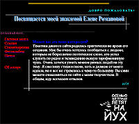 Зачем Денис сделал эту страничку? Ему, цитирую, "очень хотелось пообщаться с людьми, которым не безразлично поэтическое слово, кто устал слушать по радио и телевидению всякую зарифмованную чушь". Поэтому Денис написал свои стихи и выложил их на сайт, чтобы люди могли ознакомиться с прекрасным и забыть навсегда про всякую зарифмованную чушь. Денис, как написано на главной странице, ждет отзывов. Но я не критик, поэтому отзывов не будет. Мы просто почитаем стихи Дениса и, как водится, насладимся ими по полной программе...