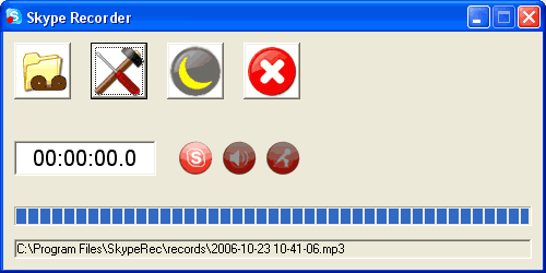Что делать, ведь в самом Skype возможности записи разговоров не предусмотрено? Не проблема, для этого можно воспользоваться совершенно бесплатной программкой Skype Recorder. Ее нужно скачать и установить. После этого программу можно запускать ручками, когда нужно записать разговор, или же разрешить ей автоматически запускаться при старте Skype. Когда программа запущена, она совершенно автоматически отслеживает все разговоры, записывая соответствующий файл на диск в формате MP3. Все делается очень четко, без лишних вопросов, и в результате вы получаете именно то, что вам нужно. Окошко программы выглядит следующим образом: