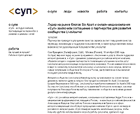 "Суп" сразу же после создания образцово-показательно забурлил. Первое, что сделала компания, - сняла в Москве крутой офис в Смоленском пассаже, после чего оный офис долго демонстрировался блоггерской общественности, вызывая у нее самые разнообразные чувства, однако явно отрицательной направленности: от легкого раздражения до острой классовой ненависти.