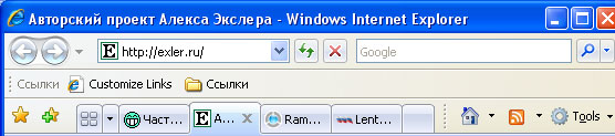 Ну, вот и все. Реализовано это, с одной стороны, вполне неплохо, однако есть нововведение, которое мне категорически не понравилось. В новом MSIE разработчики - непонятно по какой причине - не разрешают пользователю перемещать тулбары (панели инструментов). Адресная строка всегда находится сверху и слева от нее намертво прилеплены две кнопки - "Вперед" и "Назад". Справа от адресной строки - всегда строка поиска. Под ними - меню (если оно включено) и ссылки. Иконки командной панели - всегда справа от панели табов и никуда их больше передвинуть нельзя. И это очень и очень неудобно. С чего вдруг сделаны такие странные ограничения - совершенно непонятно.