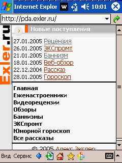 Для владельцев различных наладонных компьютеров, коммуникаторов и смартфонов сообщаю, что запущена специальная PDA-версия Exler.ru (спасибо Олегу Константинову, бессменному администратору и программисту сайта). Она располагается по стандартному адресу - pda.exler.ru.