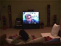 Однако смотреть DVD на компьютере Кондрат не любит. Во-первых, звук его компьютерных - самых обычных - колонок, Кондрата не устраивает. Во-вторых, смотреть фильмы, сидя за компьютером, не прикольно. Монитор маленький, поэтому приходится сидеть неподалеку на стуле, а это совершенно не круто. Круто - когда ты можешь лечь на диван, взять в руки семечки, яблочко, бутербродик, бокал с вискарем или кружку с пивом (у всех свои приоритеты) и валяться себе спокойненько, благожелательно следя за хитросплетениями сюжета.