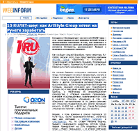 Руслан Курепин, создатель Caricatura.ru, предлагает трансляцию карикатушек (уменьшенные варианты карикатур) всем желающим. Бесплатно, разумеется. Это фактически как информер. Погода, валюта, анекдоты... Теперь будут и карикатушки. Вы просто ставите на свою страничку определенный код (на выбор) и получаете трансляцию (или правильно сказать - ротацию?) карикатур, при нажатии на которые будут открываться полные версии с Caricatura.ru. Выглядеть это может по-разному, в зависимости от дизайна сайта. У меня это выглядит так, как прямо под окончанием этого обзора...